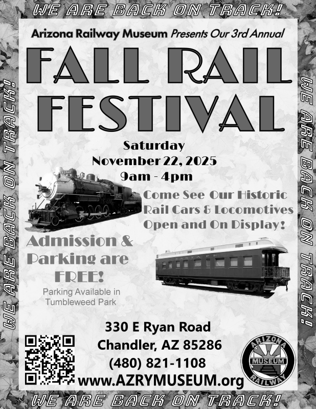 Arizona Railway Museum 330 E. Ryan Road Chandler, AZ 85286 (480) 821-1108 |